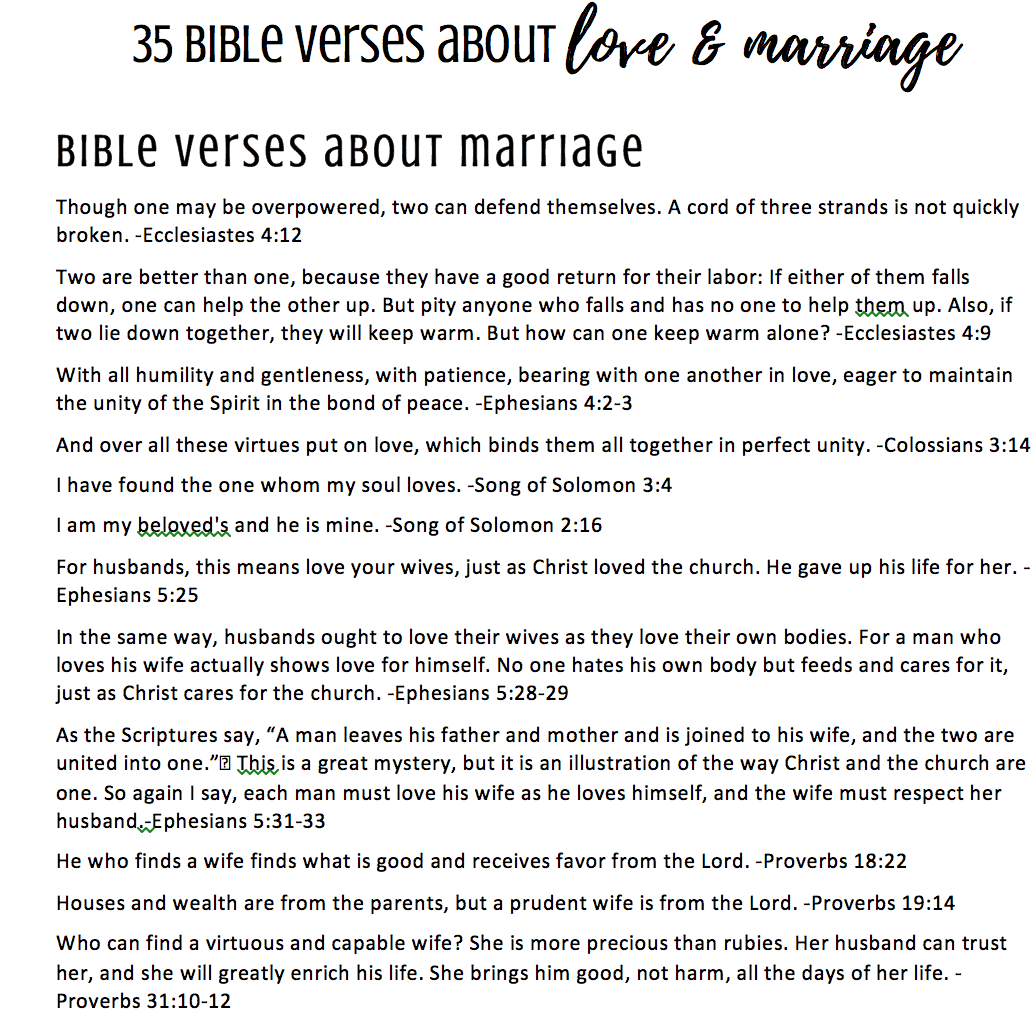 35 Bible Verses on Love & Marriage Printable