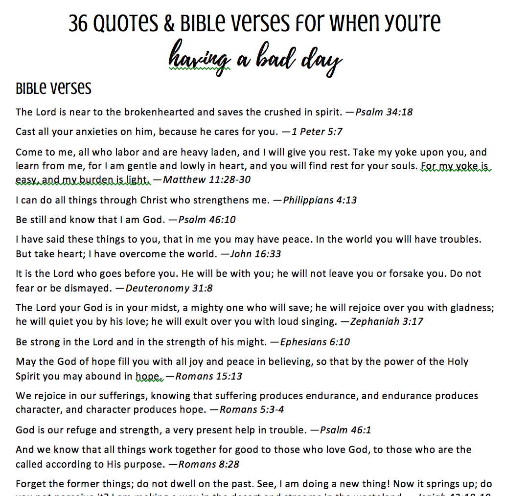 36 Quotes & Bible Verses for When You're Having a Bad Day Printable