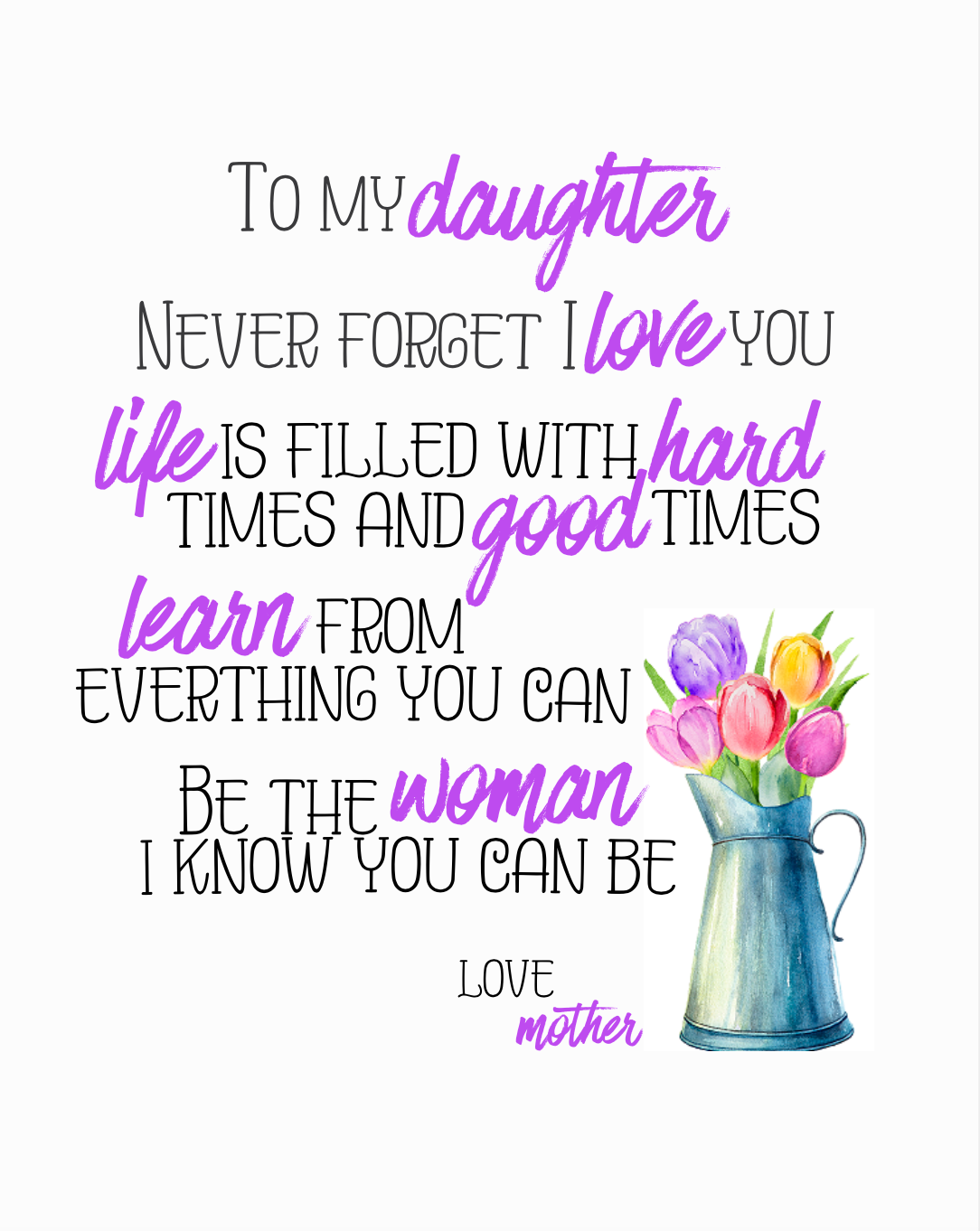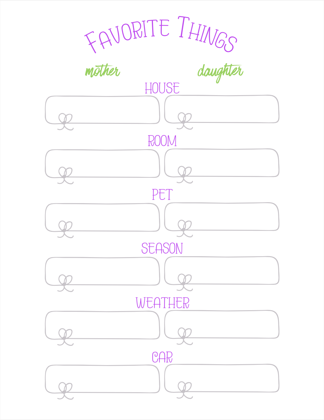 The Mother-Daughter Journal is much more than a gift; it's a tribute to your relationship and the affection you have for each other. With dozens of question-and-answer prompts, plus lists of favorite things, spaces for photos and holiday memories, and a day-by-day year-long journal for both of you, this printable Mother Daughter Journal will allow you to relive precious moments from the past and build new memories together.